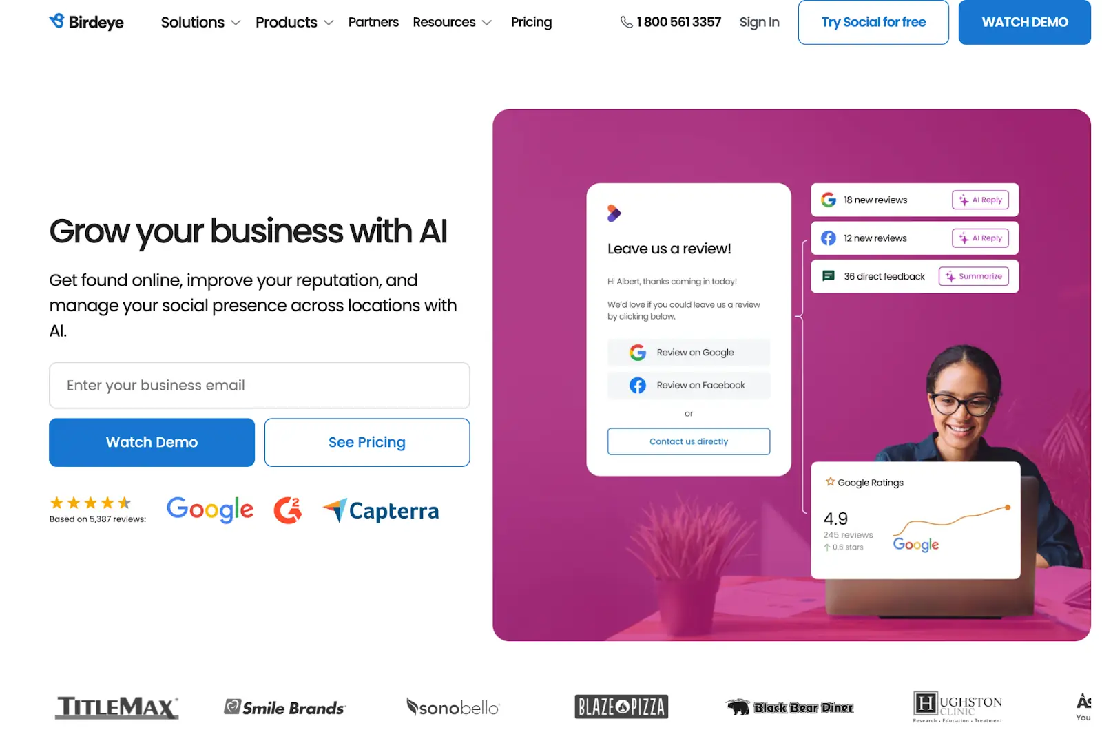 However, Birdeye doesn’t have flat-rate pricing. Instead, it’s tailored to your business size and needs. But, if you have a single-location business, pricing starts at around $299/month for their Starter plan.