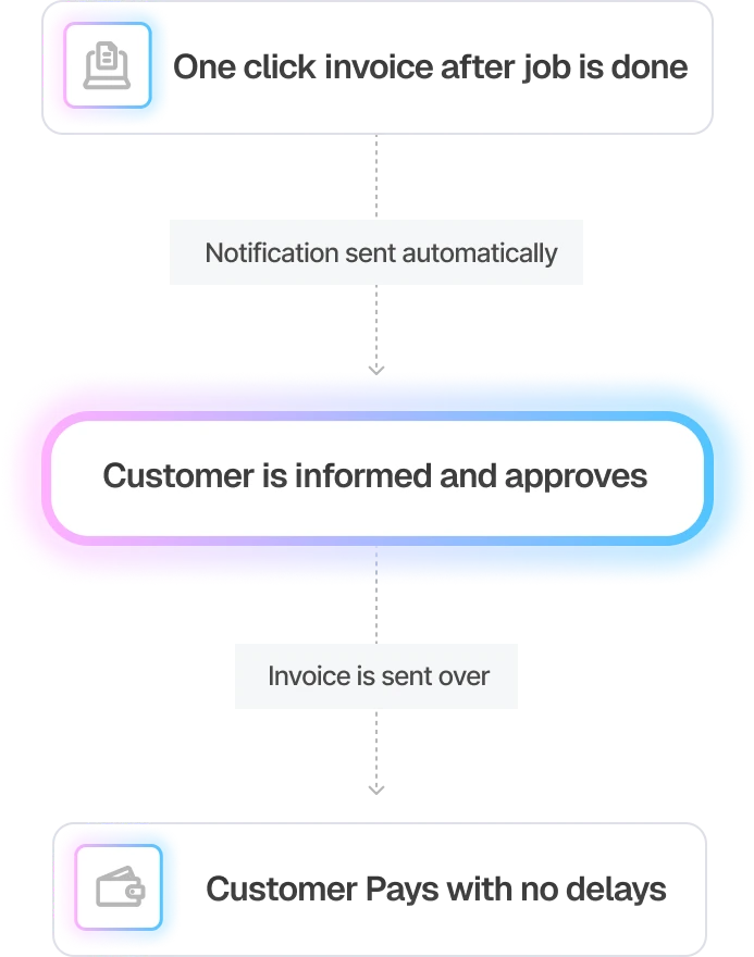 Receive instant notifications when your customer views, approves, or requests changes to an invoice, ensuring the job can be scheduled promptly and without delay.